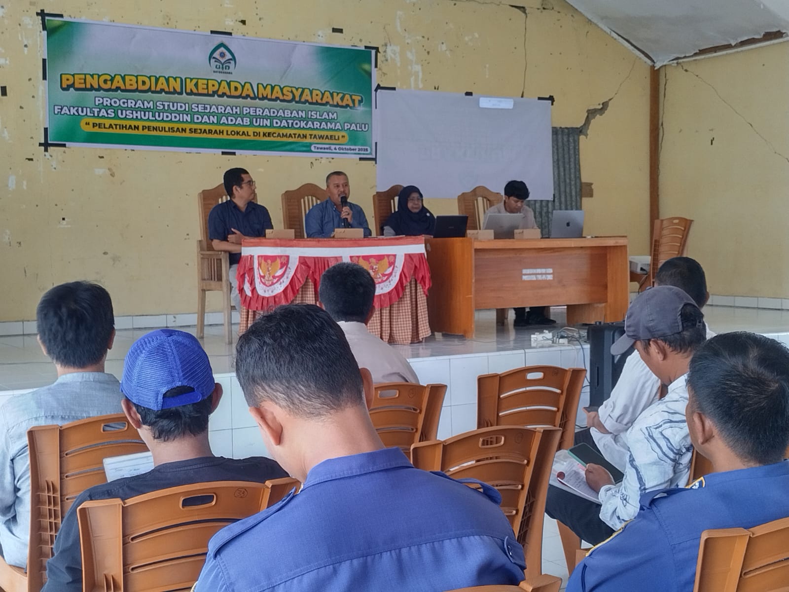 PALU, (FUAD-UINDK) — Dalam rangka memperkuat literasi sejarah lokal di kalangan masyarakat, Program Studi Sejarah Peradaban Islam (SPI) Fakultas Ushuluddin dan Adab (FUAD), Universitas Islam Negeri (UIN) Datokarama Palu menyelenggarakan kegiatan Pengabdian kepada Masyarakat (PkM) berupa “Pelatihan Penulisan Sejarah Lokal” di Kecamatan Tawaeli, Sabtu (4/10/2025).